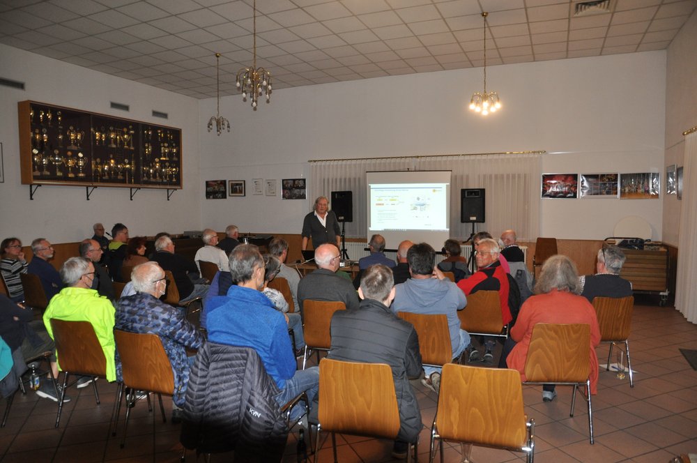 Für den abschließenden Vortrag kamen noch weitere Bürger*innen zum Sängerheim, so dass schließlich mehr als 30 Interessierte anwesend waren. Mit Christian Diebold konnte ein ausgewiesener Experte als Referent gewonnen werden. Der Architekt und Energieberater arbeitet u.a. für die Karlsruher Energie- und Klimaschutzagentur (KEK). In seinem Übersichtsvortrag mit dem Titel „Heizen mit Erneuerbaren Energien“ gab er u.a. Infos über historische Hintergründe, eine Übersicht über erneuerbare Energien und die Funktionsweise der Technologien. So wurden z.B. die verschiedenen Typen von Wärmepumpen oder die Auslegung von Batteriespeichern besprochen. Mit dem Fazit „viele Systeme, die zusammenwirken, sind für die Wärmewende erforderlich“ schloss der Referent seinen Vortrag, den die Anwesenden aufmerksam verfolgten.