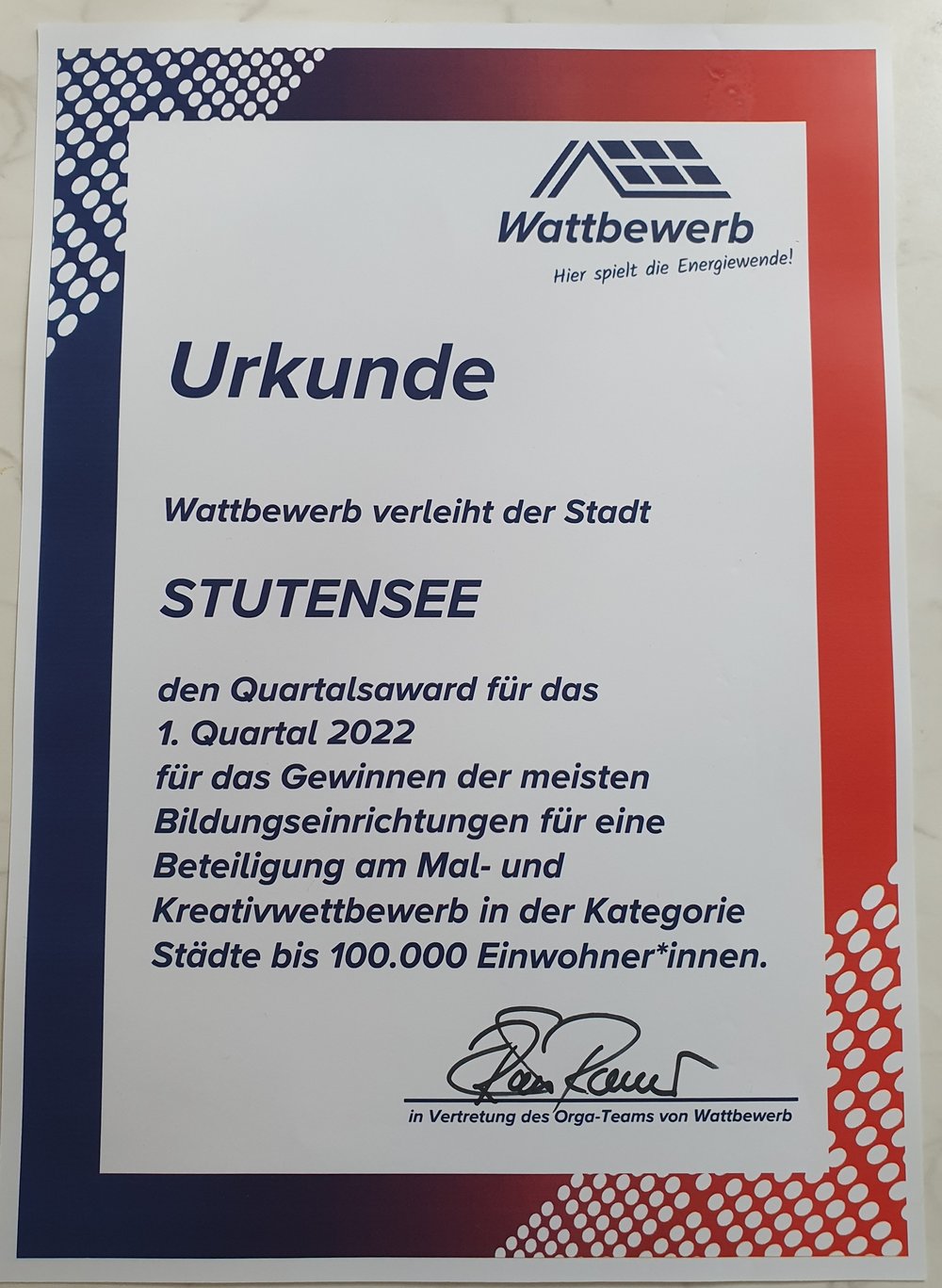 Stutensee nimmt auf Anregung unserer Fraktion hin bei der bundesweiten Initiative „Wattbewerb“ teil: