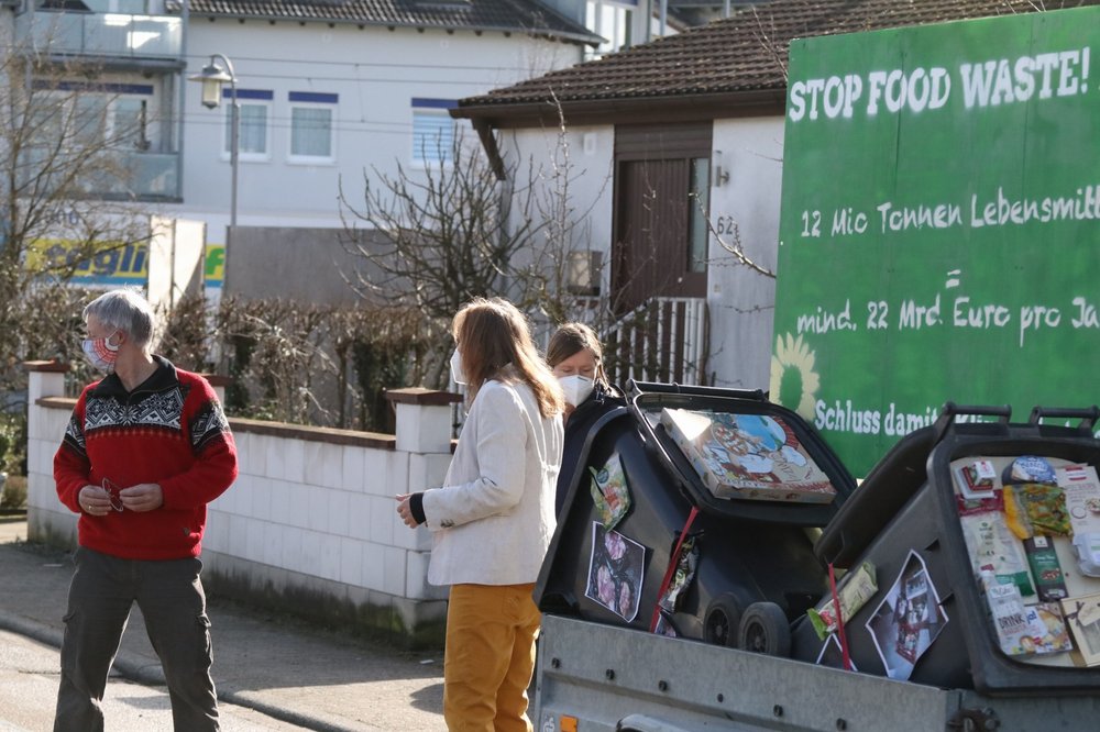 Gezeigt wird die Installation in den Ortsteilen Blankenloch und Friedrichstal. „Wir haben uns für diese Art der Performance entschlossen, weil wir die Lockdown-Maßnahmen ernst nehmen, uns aber nicht nur auf den Online-Wahlkampf beschränken wollen“, erklärt Vorstandsmitglied und Stadträtin Susanne Suhr. Es könne nicht sein, dass Hunger immer noch ein weltweites Problem sei, auch in Deutschland und Europa, und die Bundesbürger*innen zugleich in ihren Haushalten pro Jahr und Kopf durchschnittlich etwa 85 Kilogramm Nahrungsmittel wegwürfen.