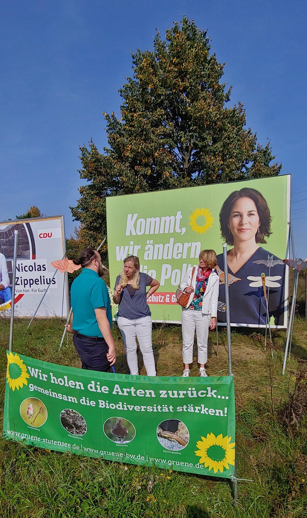Am Sonntag, den 19. September 2021, haben sich einige vom Ortsverband der Grünen Stutensee und Sebastian Grässer am späten Vormittag in Blankenloch-Nord bei den Großplakaten eingefunden.